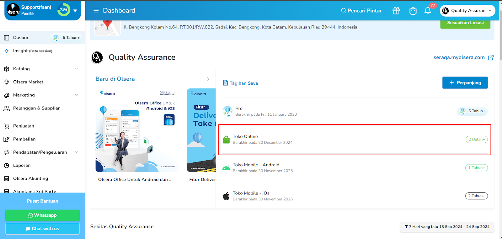 Sebelum memulai, pastikan Anda sudah berlangganan layanan Toko Online di Olsera untuk mengakses fitur pengiriman.