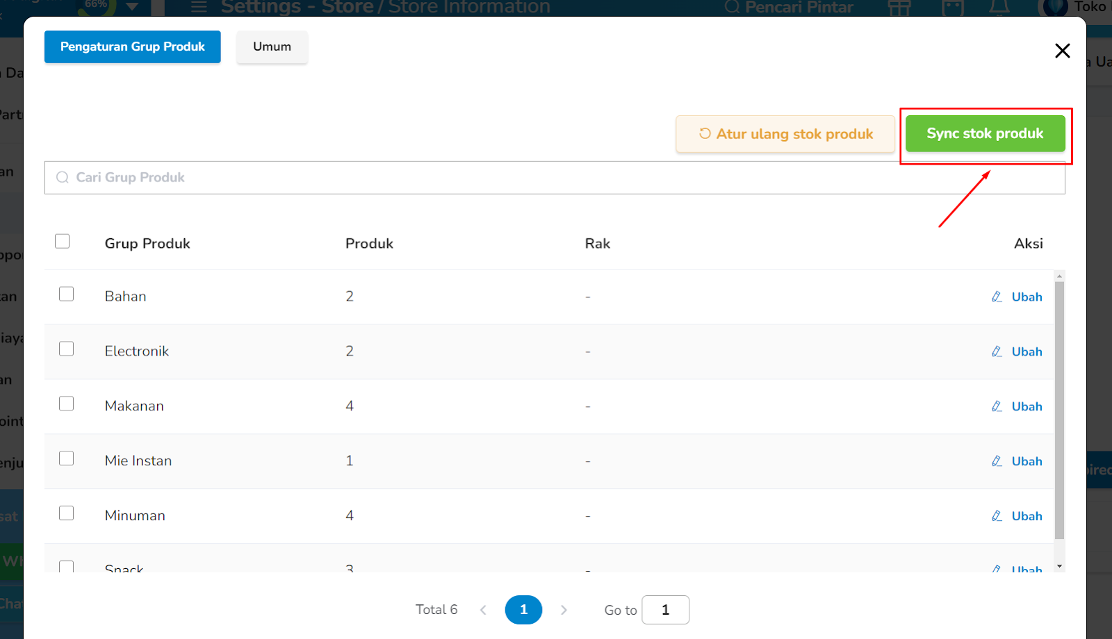 Tekan tombol Sync Stok Produk untuk menyinkronkan stok produk pertama kali menggunakan sistem FIFO.