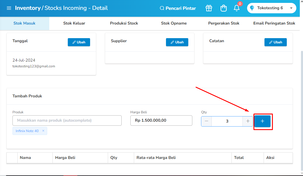 Ketika mengisi nomor IMEI, Anda bisa menekan tombol "Enter" di keyboard sebagai pemisah antar qty stok.
