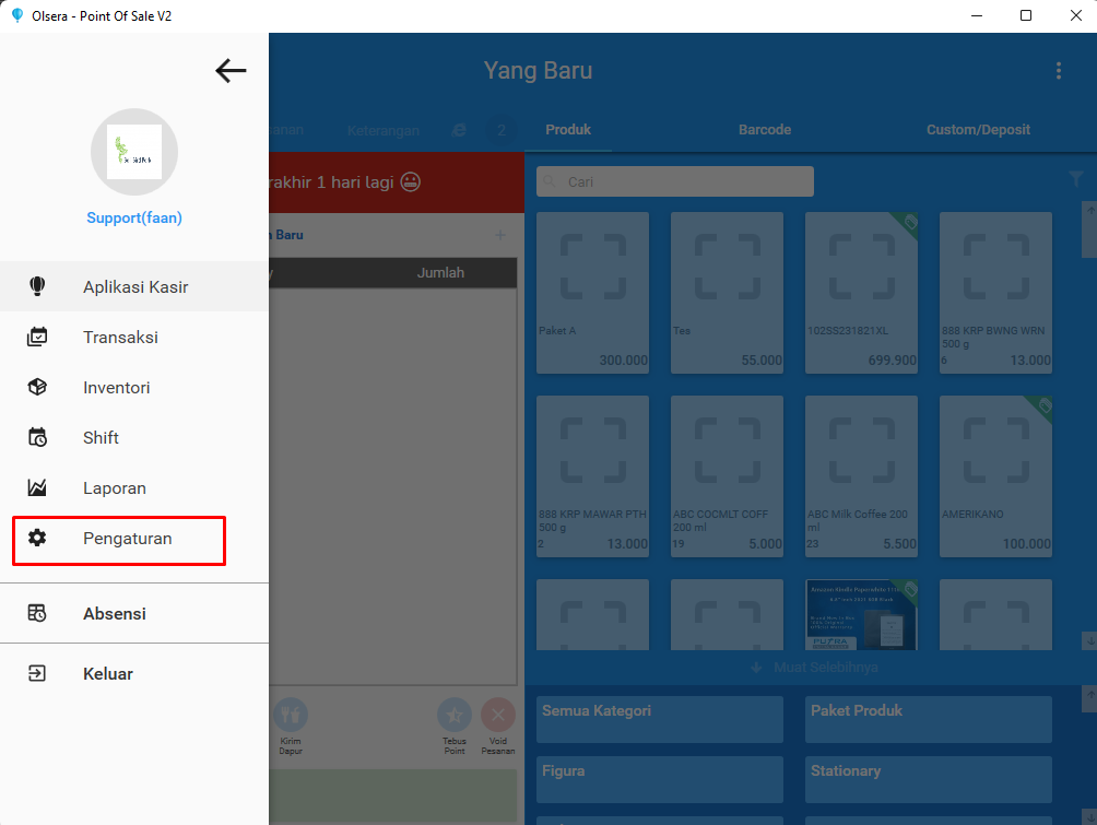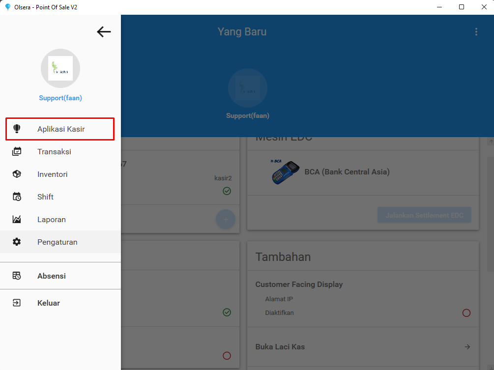 Setelah mengaktifkan server lokal, balik ke aplikasi kasir untuk melanjutkan proses.