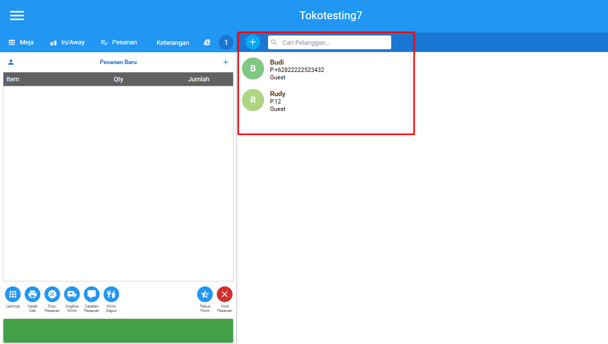 - Contoh tampilan list pelanggan pada Olsera POS
