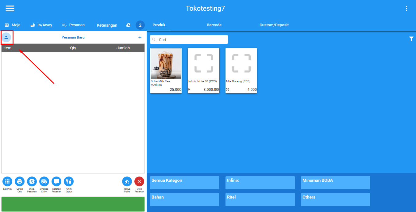Pilih opsi "Lainnya", dan masukan "Kode Member" pada kolom "Kode Pelanggan".