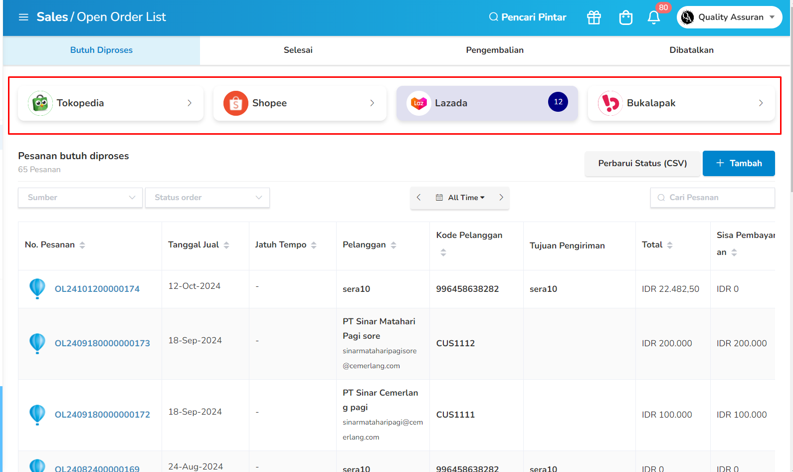 Simpan Transaksi Marketplace Setelah memilih marketplace, akan muncul daftar transaksi yang harus diproses.