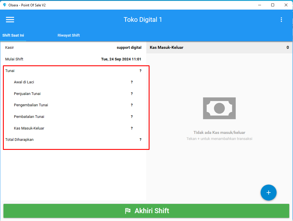 - Saat kasir menutup shift, mereka tidak akan melihat jumlah uang yang harus disetor. Fitur ini membantu meningkatkan keamanan dengan menyembunyikan informasi setoran kasir di akhir sesi.